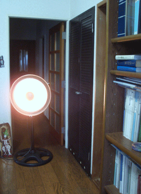 寒い朝です。これぞ正しい冬、という感じです。よって、いよいよハロゲンの太陽サンの登場です。屋外作業用のでっかい、頼もしい太陽サンで~す。今年もよろしくね~♪