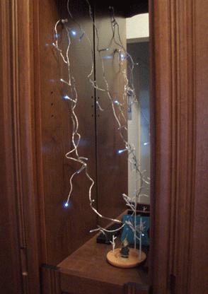 ふと思いついて、玄関に小さなイルミネーション、つけてみました。グリンのサンタと、白い木と。去年は大きな ツリーマン をリビングにつくったけど、今年は靴箱の真ん中にある、鏡のついた棚のところです。 ひっそり。鏡にいろいろ映るので、撮るのに苦戦!