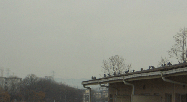 予報では、今日は雪が降るかもしれないとか。なぜかいつもとちがう場所に鳩が集結。