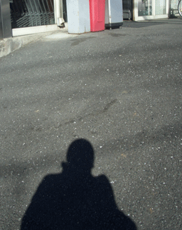バス停めざし、青空を見ながらふわふわと歩いていたら・・・いきなりのオイデヤス!アナタもワタシもたまげたね一目散!振り返る。それはそうと、オイデヤスぅ~元気だったじゃん太ってたじゃんそして逃走直前の「わ、ツブコや!」の上目使い光線、不滅、 だねぇ!