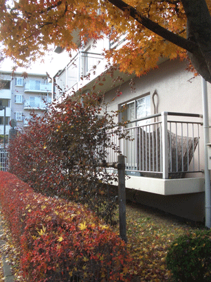 スーパーに行く途中、いつもの角でおじさんたちが一本の木を伐採の最中でした。太い枝が轟音の中で、ばんばん切られていく。そうか、12月だもんね。早々とさっぱりカットして、新年を迎えるんだな。で、帰り道・・・・・えっ!!さっぱりしすぎ!というか、、、もしかしてこの木は<無し>になったのか?思わずおじさんの顔を見たら、なにも訊かないのに「そう」と、答えたのだった。役目が済んだ赤い電動ノコとまだ働いている熊手。そして横を向いているおじさんの景。