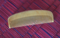 日本の職人展で買った柘植の櫛どす。8×3センチチビ可愛いっしょ。これで前髪をシュッとね♪ちっこいチュゲのクチッ♪