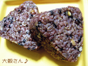あーーーうまっ!←コレ米久の大穀さまのおにぎり♪雑穀米に大豆・黒豆・小豆の豆類、それにもち米も入ってます。何が美味しいって。入っている豆類がすごーーくやわらかいの!カタチは全然くずれていないのに、こんなにホックリしているなんて!1個ずつラップフィルムに包まれているから、食べる分だけ冷凍庫から出してチンするだけの手軽さ♪お手軽大好きなワタシにピッタリじゃないか!って最近雑穀に異常に感心が高いワタクシつきもんデス。このまま食べてもすごく美味しいんだけど・・・・今回は商品ページに載っていたお茶漬けに♪っていっても特別な事なはにもなくて市販のお茶漬け海苔(もちろん永○園?)を使うの。大穀さまはあらかじめチンしてちょっと焼いておくとイイ!アツアツの大穀さまを器に入れ、お茶漬けの素をかけてアツアツのお湯をかけるだけ♪そしたら崩しながらハフハフ食べるのデス。チンだけで食べた時とは違うサラサラーっとした感じが喉をすんなり通ってお酒のあとのお父さんにも喜ばれること請け合い♪すごく美味しいのですよ!雑穀ご飯食べてる方・・是非やってみて!大穀さまのおにぎり10個入り1575円1個150円ぐらいするけれど食べてみるとその価値がわかるよー♪ ~米久さん本日終了のお得なセット~お見逃しなく!串ものポッキリセット送料込1000円【商品内容】炭火焼鳥(たれ)5本×1袋七輪しお焼鳥(しお)5本×1袋炭焼き手ごね棒(しお)5本×1袋炭火野菜豚つくね串焼(しお)5本×1袋米久サプライズセット送料込み2776円【商品内容】焼き上げハンバーグ(3種)各1P(計3P)森のきのこソースたっぷりハンバーグ各2Pちいさなトンポーロー粽子6個もちもちポテト(大)1袋手羽丸くん1袋豆炊き豚角煮1P買えば買うほど得をする ポイント倍付けキャンペーンも今日まで!