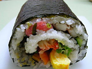 さて、今日は節分です。川越のベーカリーの帰りにスーパーに寄って買ってきました。今年の我が家の恵方巻きです。その名も「十二単巻」1,280円なり。10種類もの具がつまってんの。焼き穴子・椎茸・ねぎとろ・イカ・海老・蟹・卵・サーモン・きゅうり・レタス↑カット。かなりのボリューム。カットしちゃったのは夫婦そろって歯が調子悪いんでどっちみちかぶりつくのは困難ってことになったから。恵方巻きの意味なし。笑い・・・一応フツウの太巻きも(卵サラダ巻)買ったのね。大きさがわかると思います。今日はこれにけんちん汁とおつけものでおしまい。お腹いっぱい。去年の太巻きポンはどうしたのかって突っ込んで♪今日は夕方からクロを病院に連れて行かないといけなかったの。んでなんだか忙しいので買ってきちゃったんです。ポチっとお願いします。シロクロ