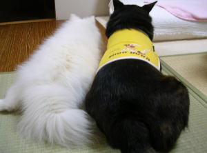 すんごいイイ天気なのでコンビニでいろいろ買って公園に。青空の下でお昼ごはんだよ。まぶしいね。クロ♪(丸2日間外に出れなかった女)ひゃほーーーい。走れ走れ♪(シロ排尿中)つきもんの影とクロの影。来る前に笑っていいとも増刊号を見てたら中居君たちがアメリカンドッ君ってのを食べていたのでアタシも食べたくなりサンクスで買ってしまった。(フツーの)本物のアメリカンドッ君は東名高速駒門SAの名物なんだってこれとはまったく違うんだなあ。スパイシーチキン串っつのが食べたくてワンワンワンワン吠えてるシロ。うるさーオムライスも食べた。森永の黄金比率プリンっていう商品。サンクスのお兄ちゃんがスプーンを入れてくれなかったのでスパイシーチキン串の串を使って食べる・・。ぐっちゃぐちゃの状態ですんません。しかしこれめちゃウマ!!!帰りにまた買ってしまった。青空とじゃがりこ。どーして空にかざして撮るとこんなに青く写るんだろー。オマケ帰ってきて爆睡中のクロとつきもんとシロ。(≧Σ≦)ぶぁっはっはっ!! バカ親子。はあ・・もう日曜日が終わっちゃうね。良かったら今日もポチっとお願いします。