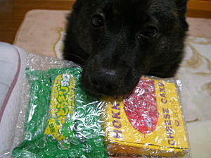 かーさんのお友達からおみやが来たよー。こ・ま・ちタンって書いてあるお。フンフンッ>鼻息あらためましてこんばんは。荷物が来ると大変興奮状態で喜ぶクロさんのショットからで失礼しました・・ヾ(;´▽`A``これはね北海道に旅行に行っていたこまちサンが送ってくれたの。北海道のお菓子やスープなど入ってました!ウレシーありがとーーー。イヌを飼ってから旅行と縁がなくなってしまったつきもん家にとってこういう旅先のおみやほどうれしいものはありません。.。*゜(ノД`)゜*。.ありがとー。お菓子だけじゃない♪こんなかわいいものまで・・♪き・つ・ねタン♪のキーホルダーよん♪肌触りがいいわーずっと頬ずりしていたい・・・ちょっと引いてみます?あ・・ども・・オレです。(有田風)>2回目もうね、このきつねタンのことが気になって気になってしょうがないクロさん。パクっとされないうちに即効高いところへ移動デス。今日はカステラもどら焼きもお休み。これをいただいちゃうよ!こまちタンが絶賛していた赤いサイロほんと!これおいしい。濃厚なチーズの味とふわっとした口どけがたまらんです!んで甘さ控えめでしつこくないんでもっともっと食べたくなるウマさ。ありがとー。美味いー♪あとは何を食べようかなーうししし・・。網走クッキーがいいかなー。秋の夜長はお菓子が美味いお! 今日はバッグを買っちまったの。一目ぼれ・・・ハートチャーム付きハンドバッグ『ライリー』のベージュ。ベージュというか・・からし色に見えるんで気に入ったのです。実際はベージュなのかなあ。カラシに近い方がよりうれしいが・・。3,980円最近特に食べたいな~と思っていて購入検討中のもの。栗くりマロン1900円栗絞りと同じ栗を使ったとても贅沢なケーキ!去年から気になってるの富士宮やきそば10食1,680円そろそろ食べたくなった。よそと比べても安いと思うしマルモの麺なので・・。ハロウィンかぼちゃシュー250円(1個)かわいい。一目ぼれ♪でもお得な同梱品がなくあきらめ気味・・。特に栗絞りのケーキは買う可能性大。よかったら今日もポチっとお願いします。