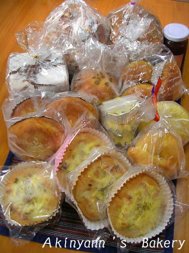 これがマイスターの手で焼き上げられたパンたちだ!どもこんばんは。昨日届いたakinyann2002サンからのおくりもの。まずはご覧ください・・・・。ネットショップでもなかなかこんな素敵なパンセットはあるまい。ってぐらいたっくさんのパンとお菓子の詰め合わせをいただきました。ありがとね・・本当に・・.。*゜(ノД`)゜*。.早速デスがいただいております。ほんとたっくさん入ってるんでちょっとずつですが紹介させてね。んでまた勝手に名づけてるけど違うだろってときは突っ込んでね。爆ベーコンマヨタマベーコン・オニオン・ピーマンのスライスにマヨネーズをトッピング♪ちょっと焼いて食べたらめちゃウマ!玉ねぎが甘くてベーコンが香ばしいっ。生地がふわふわでモチモチ。かぼちゃベーグルこれもまたモッチリふわっとだー。ウマー!!表面は焼いてパリっとさせて・・ハロウィンのリボンで結んであったのー。ハロウィンまで待てなかったよ笑今夜1人ごはんだったからシチューと一緒にいただきました。カスタードロールカスタードクリームがぐるぐると織り込まれているパン。バターの香りとカスタードの甘い香りがたまんねえ。表面がサクっとして中はふわっふわ。カスタードウマウマ+.(・∀・)゚+.゚!!やっぱり美味しいねー。全部生イーストを使っているんだって。もちもち感もすごくあるーでね。これだけじゃないのでした。実は手づくりの布雑貨も・・・。ご覧ください。めっちゃかわいいっしょーーっ。上のちょっと古風な布ものはエコバッグと書いてあったのだけどこれってすごい万能さんだと思われ♪ちゃんと厚めにマチがついてるので菓子折りを持っていくときなんて紙袋より数段かっこいいしお酒などのビン類もセンス良く見えそーだよ。もちろん普段のお買い物にもいいけど・・・。三段お重に美味しそうなお弁当詰めてこれに入れてさ。公園に行くもよしだよ!使い道が広がりそうな万能袋♪どうもありがとうパッチワーク風のかわいいのも♪すごく気に入りました。細かいところにレースがついてたり中の布が水玉だったり凝ってます。色も大好きな紺系でますますご機嫌デス。↑の画像に入りきらなかったクッキーとバラの型のフィナンシェを入れてみた♪大事にします。マイスターありがとう!よかったら今日もポチっとお願いします。明日からアップ祭が始まりそうです。狙っているお店があるかどうかチェックしてみてね。ワタシは狙っていた例の「栗ケーキ」のお店が10倍みたいなので・・ウヒヒ↑のバナーをクリックするとグルメの10倍ショップ検索結果に飛びます。