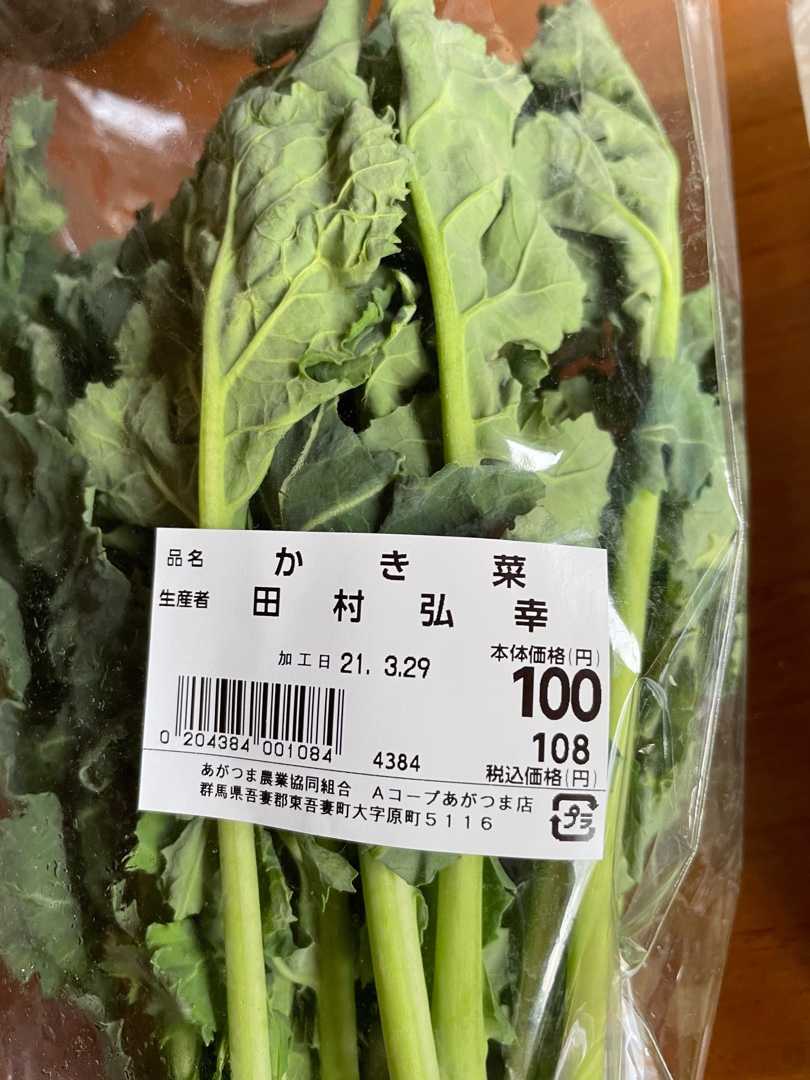 昨日JAで買ってきたかき菜は茹でただけで何もつけなくて美味しい!