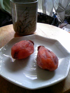 とは言っても紅茶ではなく温かい日本茶と干し柿で(´∀`)