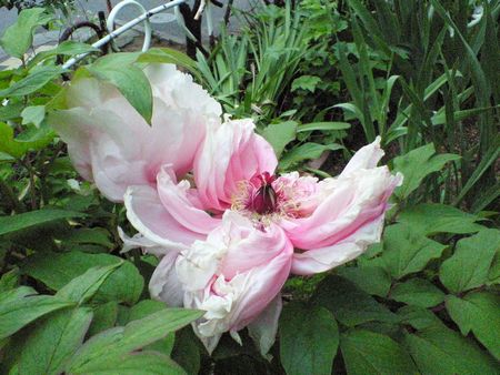 朝の散歩にて、芍薬のつぼみが開花したか見に行ったが、 相変わらずであった。 牡丹の花は一部散りかけていた。 花の命は短くて... ----前回のブログ--昨日の散歩の途中で見かけない花を撮影 ちょうど水やりに来られたその家の御夫人から花の名前を聞いた。 「牡丹」の花であった。 話には聞いた事があったが、初めて見た。 この濃い紫色の花も牡丹だそうだ。 つぼみの花は芍薬なので、咲いたら紹介します。ブログランキングに参加しています。記事にビビっときたらワンクリックお願いします!♪ にほんブログ村!!アダルトトラックバックやコメントはやめてください!!