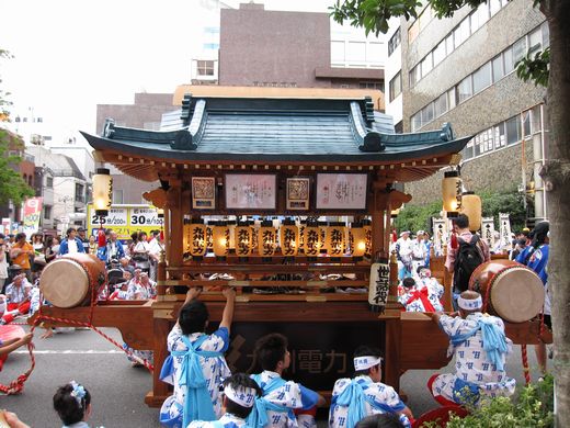 昨日、小倉祇園祭りを見物した。 奥さんと観たのは、 第35回記念太鼓広場は、参加山車が、旧小倉城下町(ちゅうぎん筋・みかげ筋・旦過小文字筋・京町筋・鳥町筋・魚町銀天街筋)を回遊巡行します。 (18時から21時まで)この日が最終日 7月19日 第21回小倉祇園太鼓据え太鼓競演会 11時半~17時 参加者は朝からのため、小さなお子さんは疲れ気味でした。 パレードが始まる前(PM6時前) テープカット 小倉祇園太鼓は、全国的にも珍しい両面打ちを特徴とし、その打法は著しく発展を遂げました。昭和33年4月、民族的に重要であることから、福岡県指定無形文化財(昭和51年4月に福岡県指定無形民俗文化財に指定替え)に指定されました。 少年組 優勝太鼓を叩く人はどちらかといえば女性が多かった! 太鼓の皮の張り方で、一面は甲高い音を出し、他面は少しにぶい濁音が出ます。甲高い方をカン(オモテ又はホンとも云う)といい、濁音の方をドロ(ウラ又はモトとも云う)といいます。もちろんドロとカンとでは全く打ち方が違います。 ◆ ドロ(濁) ドロ(濁)は単調で、正しく平調にリズミカルに打ちます。このドロが正しく打っていないと、カンが打ちにくいので、ドロがいわば基本調となります。 ◆ カン(甲) カン(甲)の打ち方は難しく、技術を要します。ゆっくりと正しく格調をもって、元気いっぱいに歩調を合わせて打つのが正しい打ち方です。要するに腰を柔らかくして、手首と膝で打つのが秘訣とされ、地味に叩いて、品よく打つのが古法とされています。 ◆ ジャンガラ(摺り鉦) ジャンガラ(摺り鉦)は太鼓の調律をリードするので、ドロ・カンをマスターした人がこれに当たります。 ◆ 小倉の祇園は金がふる 下関の有名な年中行事の一つである赤間宮の先帝祭と、小倉祇園祭は不思議にも天候に恵まれず雨が降ることが多かった。そこで当日、天気が良いと大変な賑わいとなり、十数万人の見物人で城下町は沸きかえるようなお祭りとなる。『関の先帝、小倉の祇園 雨が降らねば金がふる』といわれ、商売繁盛、お賽銭の山が築かれたのである。 今日は雨ですが、昨日は曇りで大勢の見物客で賑わいました。 パレード前撮影 最前列の一番右のお子さんはお疲れ気味 動き出す前は居眠りしていました。 ブログランキングに参加しています。記事にビビっときたらワンクリックお願いします!♪ にほんブログ村!!アダルトトラックバックやコメントはやめてください!!