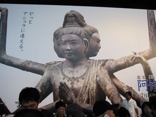 昨日、太宰府の九州博物館へドライブ やっと 阿修羅に逢える 目的は「九州国立博物館」で、 平成21年7月14日(火)~9月27日(日)まで、 特別展『国宝 阿修羅展』が開催されているので 会社の臨時休業日に見に行きました。 奥さんが洗濯等の日常業務?を済ませて 昼食を取って午後の2時前出発 大宰府天満宮に参詣後 阿修羅展へ 通りにノボリ 9/21~9/25 大宰府天満宮はイベント 天満宮側の入場券売り場に「120分待ち」 閉館午後5時なのに「120分待ち」あせった! エレベータを上がっていくと 係員に確認すると、見れますとのことで並んだ! 館の外側で待つこと1時間 入館すると長蛇の列 館内で待つ時 pm4時半 やっと5時前に特別展会場前に そこで冒頭のポスターのフレーズを観て共感 「やっと 阿修羅に逢える」 2時間も並んで待ったのは生涯初めての経験であった。 館内は撮影禁止のため、阿修羅像などを 撮れなかったが面白い経験をした。 阿修羅像の周りは見物客が多いので ガイドさんが像の周りを15歩ずつ時計周りに 動くように案内していた。 pm5時閉店が5時半に延長されたが 阿修羅展を観た時間は30分未満であった。 ただ押し合いへながら阿修羅像の周りを 一周しながら像の表情を見れたのは 幸せであった。 興福寺創建1300年記念 国宝阿修羅展を見れて良かった 最後にポスター前を撮影 ここで記念撮影をする人が大かった。 阿修羅展を観るなら、2時間待ちを覚悟し、 来週の金曜日までに行かれることを推奨します。 (9/21~9/25 大宰府天満宮イベント・高速休日1000円を考慮) ブログランキングに参加しています。 記事にビビっときたらワンクリックお願いします!♪ にほんブログ村 !!アダルトトラックバックやコメントはやめてください!!