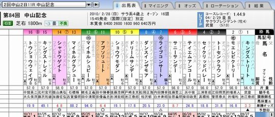 「第44回 小倉大賞典」 私の予想は外れ いつになったら、みなさんに当たったよと報告できるのかな? 私の馬券 件数 場名 レース 式別 馬組 金額 (1) 中京(土) 11R 3連複 01-04-07 500円 (2) 中京(土) 11R 3連複 01-04-14 500円 (3) 中京(土) 11R 3連複 01-07-14 500円 (4) 中京(土) 11R 3連複 04-07-14 500円 (5) 中京(土) 11R 3連単 04→01→07 100円 (6) 中京(土) 11R 3連単 04→01→14 100円 (7) 中京(土) 11R 3連単 04→07→01 100円 (8) 中京(土) 11R 3連単 04→07→14 100円 (9) 中京(土) 11R 3連単 04→14→01 100円 (10) 中京(土) 11R 3連単 04→14→07 100円 (11) 中京(土) 11R 3連単 14→01→04 100円 (12) 中京(土) 11R 3連単 14→01→07 100円 (13) 中京(土) 11R 3連単 14→04→01 100円 (14) 中京(土) 11R 3連単 14→04→07 100円 (15) 中京(土) 11R 3連単 14→07→01 100円 (16) 中京(土) 11R 3連単 14→07→04 100円 合計 3,200 ---前回のブログ--- 上がり馬重視 ▲ リトルアマポーラ (1枠1番 中館騎手)1番人気3.7倍 13着2008年のエリザベス女王杯以来の勝ち星となったのが、前走の愛知杯。中舘英二騎手を鞍上に迎え、いつも以上の積極策で道中は2番手追走。この好騎乗が同馬の真骨頂であるしぶとさを引き出したのは言うまでもないだろう。200mの距離短縮となるが、前走と同じ中京競馬場が舞台。調教の動きも相変わらず絶好とあれば、ポイントは"牡馬との力関係"のみと言えるだろう。重賞連覇を期待してもいいはずだ。 △ ドリームサンデー (4枠7番 秋山騎手)3番人気 5.6倍 11着直前の追い切りの気配が抜群に良く、約3か月の休養によるリフレッシュ効果を十分に感じられたのが、前走の中日新聞杯。開幕週の馬場で単騎逃げという、絶好の展開に持ち込めたのはもちろん大きかったが、状態面の裏付けがあってこその2着好走だというのは忘れずにおきたい。この中間は、相変わらず馬体の張り、毛ヅヤともに状態面は文句のないもの。前走時ほど先行有利の馬場ではないとはいえ、マイペースの展開に持ち込むことができれば、大きく崩れるシーンは考えにくい。 〇 マイネルスターリー (2枠4番 三浦騎手)4番人気6.7倍 5着(2着降着) 全6勝中5勝を札幌競馬場で挙げている洋芝巧者。それだけに、軽い芝の東京競馬場で初勝利を挙げたのは驚きだった。しかも札幌での前2戦、1000万下のライラック賞(芝1800m)、1600万下のポプラS(芝2000m)よりも強い勝ち方をした前走のアイルランドT(東京・芝2000m)は、2着がトウショウシロッコ、3着キャプテンベガと相手も揃っていた。地力強化を証明した1戦と言っても良いだろう。今回は3か月半ぶりの実戦となるが、休み明けは3戦2勝と苦にするタイプではない。 ◎ ナリタクリスタル (7枠 14番 武 豊騎手)2番人気 4.1倍 2着昨秋に戦列に復帰してからは〔2・1・0・1〕と堅実な成績。大きく崩れたのは休み明けのセントライト記念(11着)だけで、このレースも力負けというよりは、距離の壁を感じさせたレース振りだった。勝ったレースでの着差はわずかだが、抜け出すとソラを使ってしまう気性の難しさを武豊騎手が熟知しているがゆえのこと。むしろその競馬内容は、相手が強化される重賞でも互角以上に走れる可能性を感じさせるものと言えそうだ。 ホッコーパドゥシャ (7枠13番 北村騎手) 10番人気 32.7倍 9着7歳夏に一気に素質が開花。昨夏の七夕賞3着、小倉記念2着のあと、新潟記念を制して、2009年『サマー2000シリーズ』のチャンピオンに輝いた。能力的には今回の出走馬の中でもトップクラスにランクされる馬だが、天皇賞(秋)が16着、中山金杯が12着と、近2走は成績・内容ともにひと息。元来が調教駆けしないタイプとはいえ、夏場に見せた力強さが見られないのは気掛かりだ。 ブログランキングに参加しています。 記事にビビっときたらワンクリックお願いします!♪ にほんブログ村!!アダルトトラックバックやコメントはやめてください!!