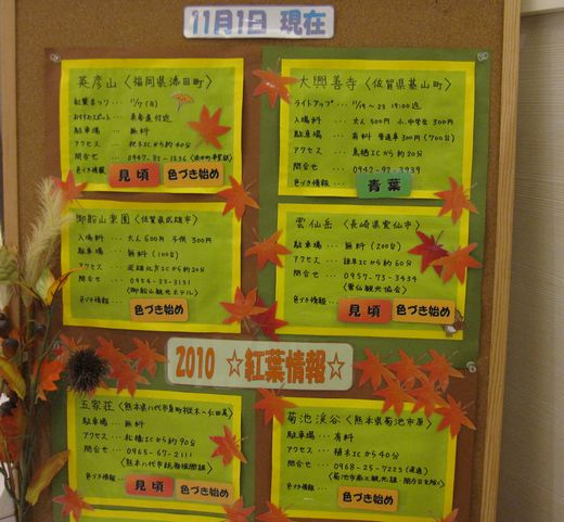 基山SA下り 今回初めて入ったSA 2010/11/02 しゃれた感じが気に入った。 お近くの方は是非寄られたら 紅葉情報は嬉しいですね 次も寄りたいと思いました。 ---前回のブログ-- キリンビアファームへコスモスを観に出かけます 今日は先日の土曜出勤日の代休で 家内と筑後小郡ICそばの秋月観光と コスモスを観に行きます。 小倉は晴れ、旅行日和 ブログランキングに参加しています。 記事にビビっときたらワンクリックお願いします!♪ にほんブログ村!!アダルトトラックバックやコメントはやめてください!!