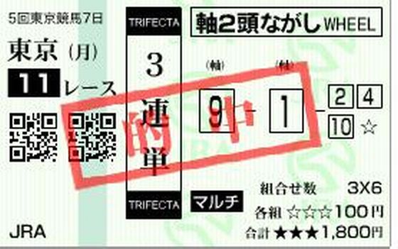 おはようございます。小倉は曇り 東京スポーツ杯2歳Sが当たりました。 先週の3日間では、このレースのみ購入し当たりました。 土日の2日は巡礼で予想する時間がなく、 月曜日は 巡礼に行く前の時間に予想したのが当たりました。 01 東京 月 11R 3連単軸2頭ながしマルチ 軸:09,01 02,04,10 各 100円計1,800円 10→09→01 20,880円 20,880円 表示 02 東京 月 11R 3連複軸2頭ながし 軸:01,09 02,04,10 各 400円計1,200円 01-09-10 3,590円 14,360円 表示 合計 3,000円 35,240円 <東京スポーツ杯2歳S>◇23日=東京◇G3◇芝1800メートル◇2歳◇出走11頭 武豊騎乗の4番人気スマートオーディン(牡、松田国)が豪快に差し切り、重賞初制覇を飾った。勝ちタイムは1分49秒5。 後方から進出し、直線では大外から抜群の伸びを見せると最後は余力を残しながら1馬身差をつけた。武豊騎手は「期待通り。すごく伸びましたね。すごい切れ味」と絶賛した。2着は2番人気プロディガルサン(牡、国枝)、3着に6番人気マイネルラフレシア(牡、高橋裕)。1番人気のロスカボス(牡、高野)は8着に終わった。 馬連(9)(10)1370円、馬単(10)(9)3220円、3連複(1)(9)(10)3590円、3連単(10)(9)(1)2万880円。 今日も素適な1日となりますように ブログランキングに参加しています。 記事にビビっときたらワンクリックお願いします!♪!!アダルトトラックバックやコメントはやめてください!!