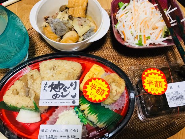 こんばんは、小倉は小雨今日の夕食は、唐十の地どりめし弁当と鶏きも煮を半額で購入、これに筑前煮とダイコンのカット野菜と焼酎でした。この後は、つまみに納豆豆腐にちりめんとネギとニンニクをトッピングして頂きます。今日も素適な1日となりますように 記事にビビっときたらワンクリックお願いします!♪!!アダルトトラックバックやコメントはやめてください!!