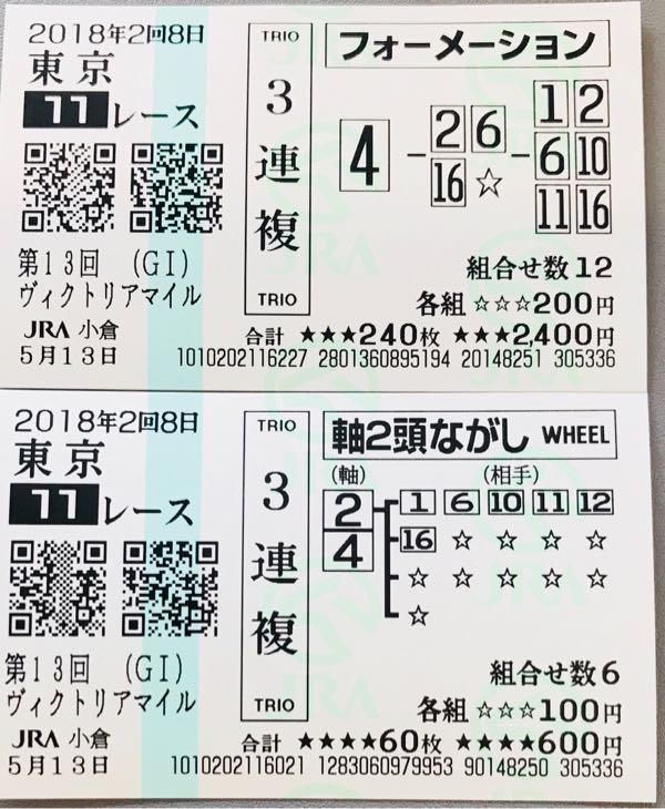 久しぶりにG1馬券が当たりました。但し、小倉競馬場で4ー16を2-4に変えたのが残念です。IPATは300円分当たりです。今日も素適な1日となりますように 記事にビビっときたらワンクリックお願いします!♪!!アダルトトラックバックやコメントはやめてください!!