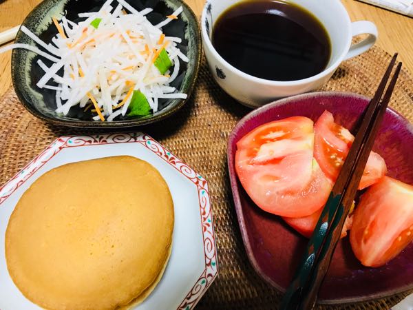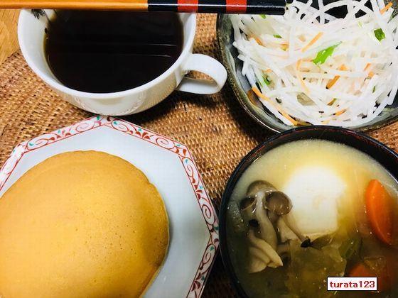 おはようございます😃小倉は晴れ☀️です。今日の朝食はパンケーキ、卵🥚入り味噌汁、カットダイコンサラダ、蜂蜜入りコーヒーでした。朝はほとんどこのメニューです。今日も素適な1日となりますように 記事にビビっときたらワンクリックお願いします!♪!!アダルトトラックバックやコメントはやめてください!!
