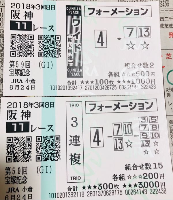 こんにちは、宝塚記念はワイド馬券が当たりました。IPATも当たりました。4-13 3450円の配当でした。残念ながら3連複は外れました。<宝塚記念>◇24日=阪神◇G1◇芝2200メートル◇3歳上◇出走16頭 単勝7番人気のミッキーロケット(牡5、音無)がG1初勝利をつかんだ。道中は好位のインを追走。4コーナーで先頭に並びかけると、直線に入ってすぐ抜け出し、そのまま押し切った。 鞍上の和田竜二騎手(41)は、テイエムオペラオーで制した01年天皇賞・春以来17年ぶりのJRA・G1制覇。同馬は今年5月にこの世を去っており、和田騎手は「オペラオーが後押ししてくれたと思う」と声を詰まらせた。 2着は10番人気の香港馬ワーザー。3着は12番人気ノーブルマーズ。 馬連(4)(13)は9200円、 44番人気馬単(4)(13)は1万9630円、87番人気3連複(2)(4)(13)は9万3450円、1272番人気3連単(4)(13)(2)は49万2560円。1272番人気今日も素適な1日となりますように 記事にビビっときたらワンクリックお願いします!♪!!アダルトトラックバックやコメントはやめてください!!