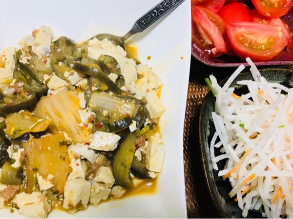 こんばんは、小倉は晴れています。今日は気管支炎の為、プールを休んだので18時半に頂きました。キムチとナスをトッピングした麻婆豆腐丼、トマト、カットダイコンサラダでした。今から散歩🚶♂️に出かけます。今日も素適な1日となりますように 記事にビビっときたらワンクリックお願いします!♪!!アダルトトラックバックやコメントはやめてください!!