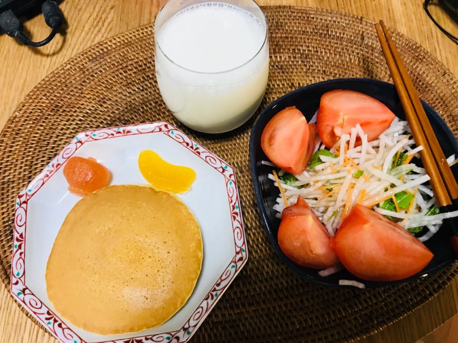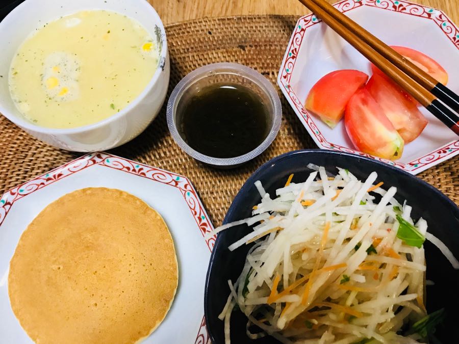 おはようございます😃小倉は曇り☁️時々晴れです。今日の朝食は、パンケーキ、トマト、カットダイコンサラダ、黒須もずく、玄米スープでした。素敵な水曜日となりますように記事にビビっときたらワンクリックお願いします!♪!!アダルトトラックバックやコメントはやめてください!!