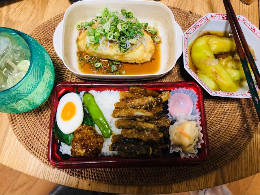 こんばんは、小倉は雨☂️があがり曇り☁️です。今日の夕食は、唐十の半額シャキシャキごぼう弁当、焼きなす、しらすと細ねぎをトッピングした揚げ出しとうふとレモン入り芋焼酎の水割りでした。素敵な木曜日となりますように記事にビビっときたらワンクリックお願いします!♪!!アダルトトラックバックやコメントはやめてください!!