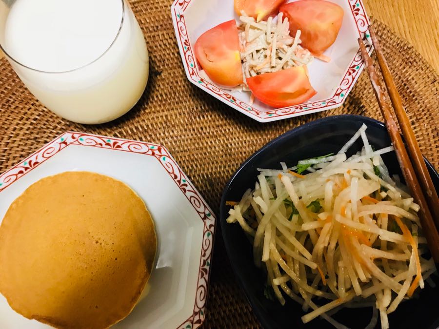 おはようございます😃小倉は曇り☁️後晴れです。今日の朝食は、パンケーキ、カットダイコンサラダ、トマトとごぼうサラダ、ヨーグルトでした。素敵な火曜日となりますように記事にビビっときたらワンクリックお願いします!♪!!アダルトトラックバックやコメントはやめてください!!