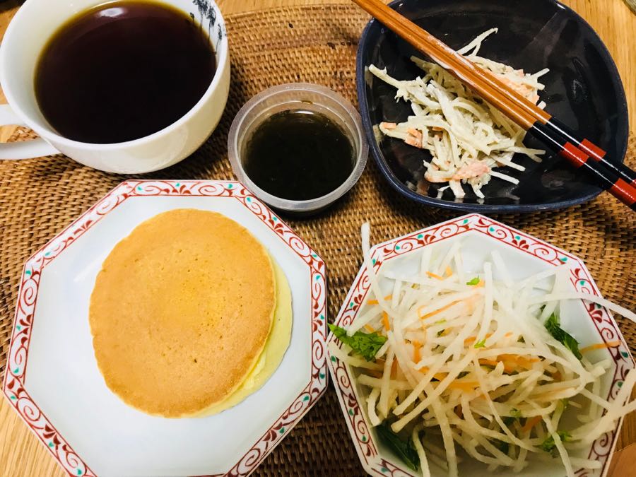 おはようございます😃小倉は曇り☁️です。今日の朝食は、パンケーキ、ゴボウサラダ、カットダイコンサラダ、黒須もずく、蜂蜜🍯入りコーヒーでした。今日もプールに通います。今週もよろしくお願いします。記事にビビっときたらワンクリックお願いします!♪!!アダルトトラックバックやコメントはやめてください!!