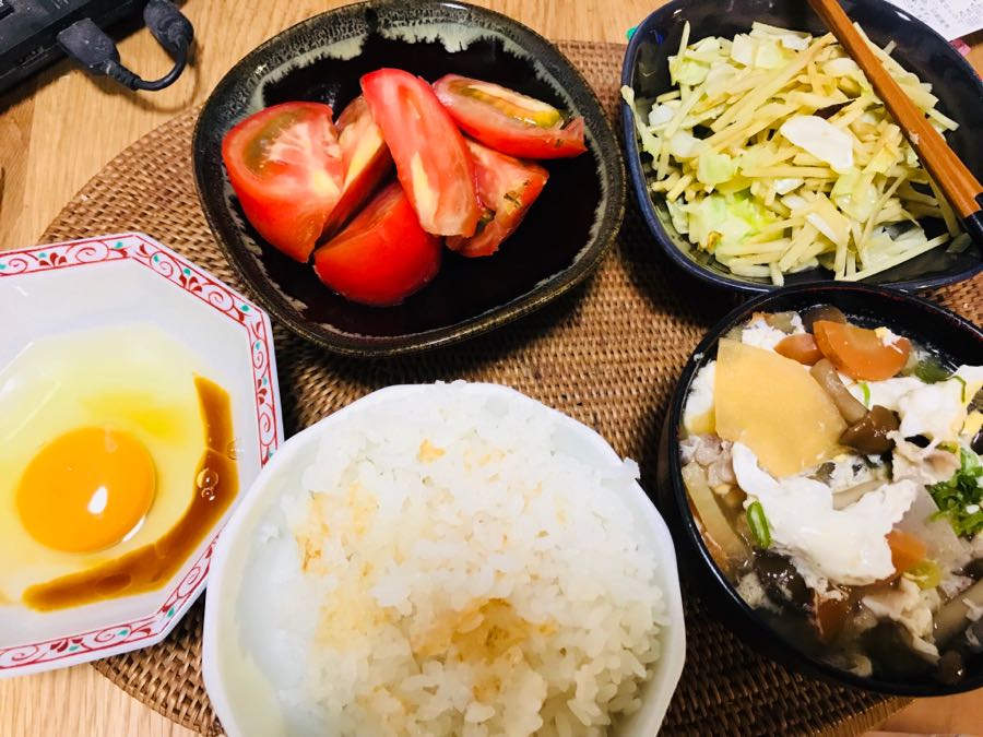 こんにちは、小倉は雨☔️風が強くなってきました。今日のランチは、生卵かけご飯、卵🥚入り豚汁、トマト、ごぼうとキャベツの炒め物でした。お米は、2合半炊いて3食分は冷凍保存します。素敵な日曜日となりますように記事にビビっときたらワンクリックお願いします!♪!!アダルトトラックバックやコメントはやめてください!!