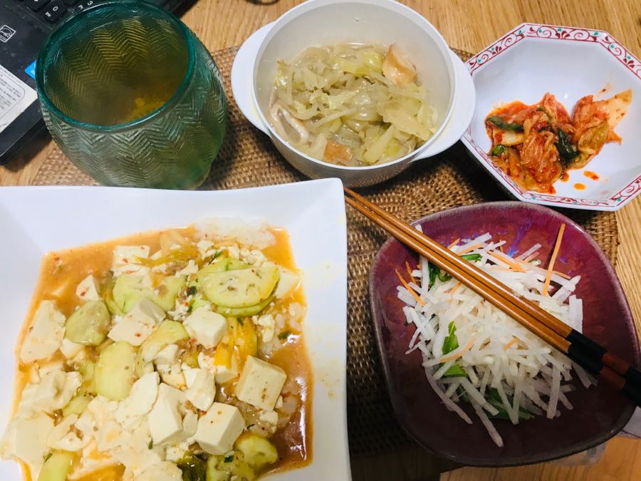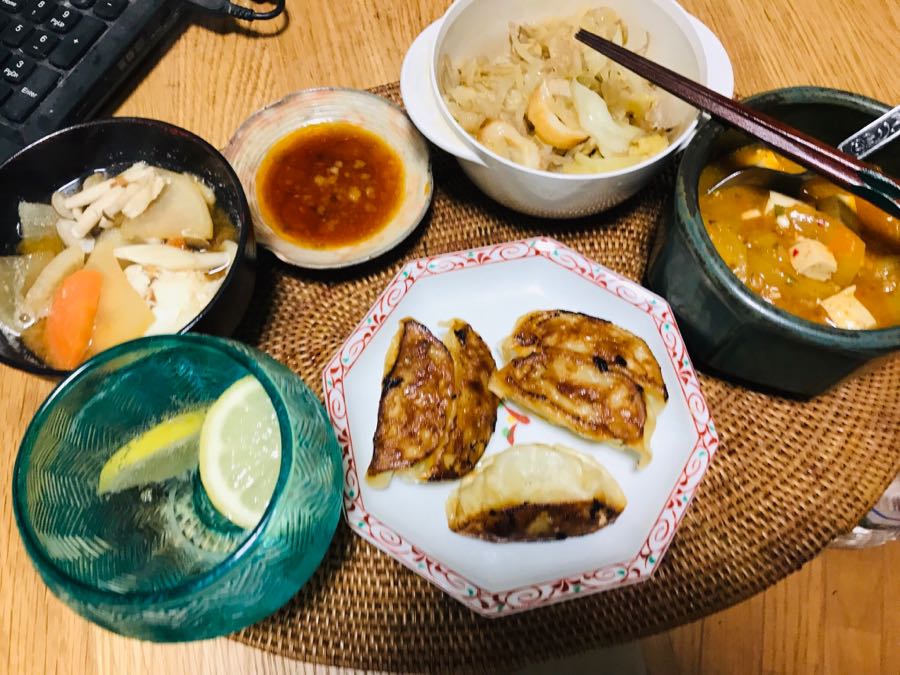 こんばんは、小倉は曇り☁️です。今日の家呑み、餃子、キャベツと玉ねぎともやしと鯛ちくわの煮物、卵入り味噌汁、麻婆豆腐、レモン🍋入りレモン酎ハイでした。この後は、卵🥚入り味噌汁と煮物を肴に芋焼酎を呑みます。素敵な土曜日となりますように 記事にビビっときたらワンクリックお願いします!♪!!アダルトトラックバックやコメントはやめてください!!
