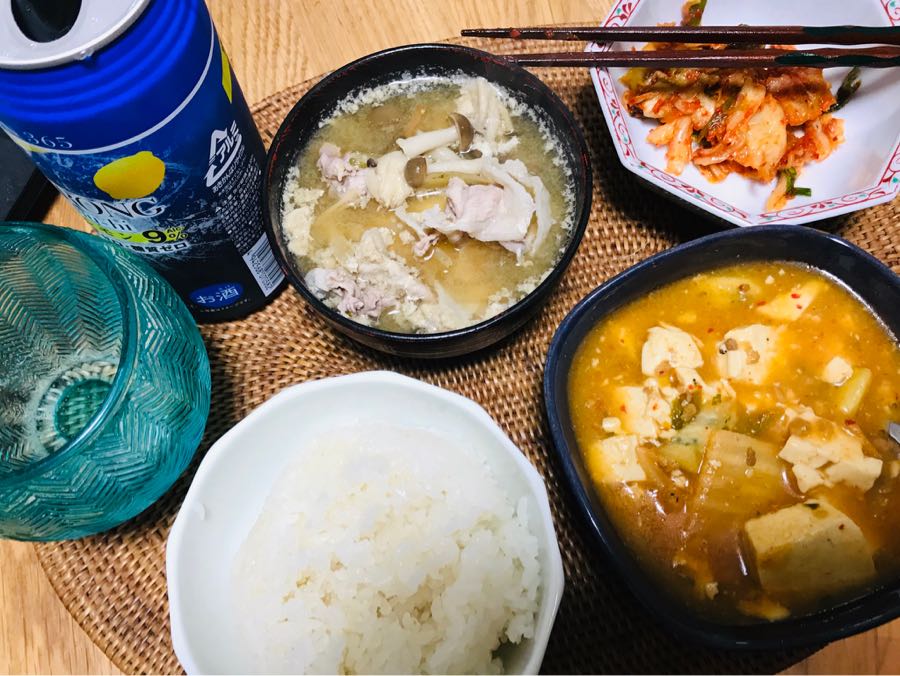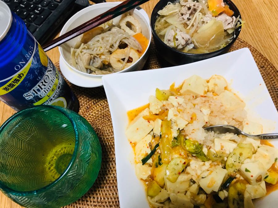 こんばんは、小倉は曇り☁️です。風呂に入り、じっくり呑みます。今日の家呑みは、ご飯、麻婆豆腐、卵🥚入り豚汁、白菜キムチとレモン酎ハイでした。この後は、筑前煮と2杯目の卵🥚入り豚汁を肴に、レモン🍋入り芋焼酎で呑みます。素敵な火曜日となりますように記事にビビっときたらワンクリックお願いします!♪!!アダルトトラックバックやコメントはやめてください!!