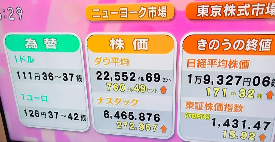 おはようございます😃 NY市場大幅に上昇 今日の日本も大幅に上昇か?