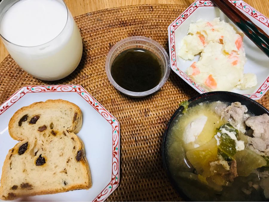 おはようございます。小倉は曇り☁️です。今日の朝食は、レーズンパン、卵🥚入り豚汁、ポテトサラダ、黒酢もずくと飲むヨーグルトでした。今日から1月6日まで休みです。素敵な土曜日となりますように記事にビビっときたらワンクリックお願いします!♪!!アダルトトラックバックやコメントはやめてください!!