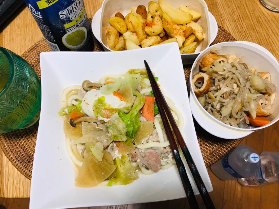 こんばんは、小倉は曇り☁️です。今日の家呑みは、風呂🛀あがりで豚汁に卵とうどんをトッピングして、筑前煮、ジューマンポテトとレモン酎ハイでした。この後は、豆乳かまぼこと黒酢もずくを追加してレモン🍋入り芋焼酎を呑みます。素敵な木曜日となりますように記事にビビっときたらワンクリックお願いします!♪!!アダルトトラックバックやコメントはやめてください!!