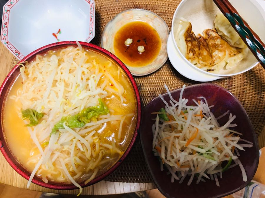 こんにちは、黒崎は曇り☁️です。今日の昼食は、黒豆もやしと白菜キムチをトッピングした豚骨らーめん、餃子とカットダイコンサラダでした。素敵な土曜日となりますように記事にビビっときたらワンクリックお願いします!♪!!アダルトトラックバックやコメントはやめてください!!