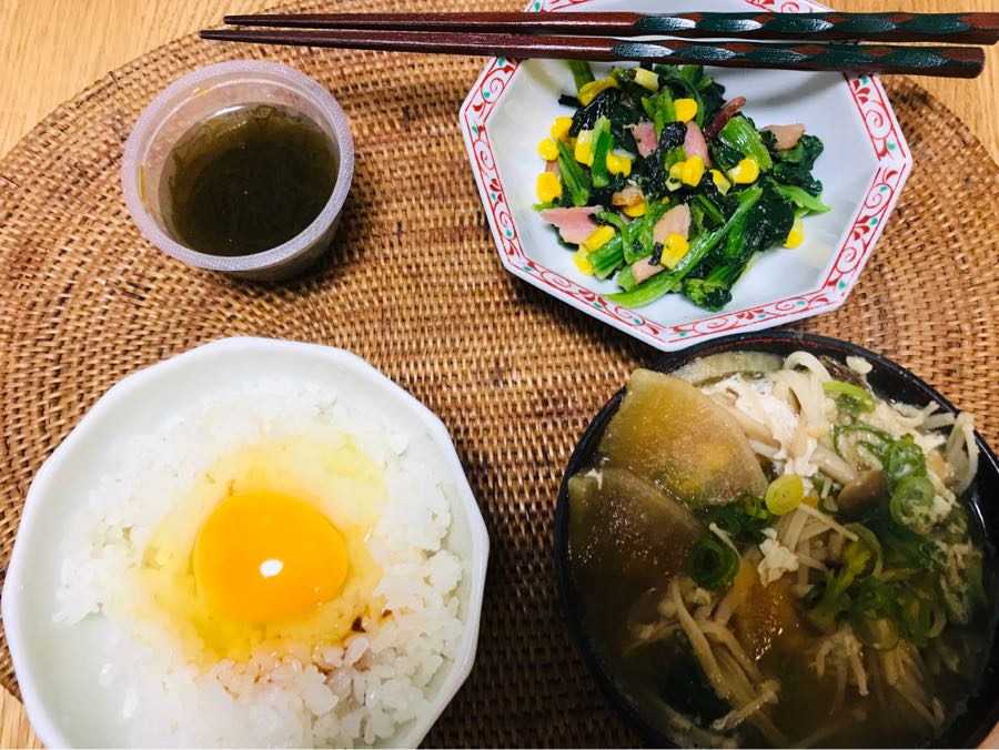 おはようございます😃小倉は雨☂️後晴れです。今日は、久しぶりにご飯を炊きました。今日の朝食は、生卵かけご飯、卵🥚入り味噌汁、ほうれん草とベーコンの炒め物、黒酢もずくでした。今日は今年最後のプールに通います。素敵な日曜日となりますように 記事にビビっときたらワンクリックお願いします!♪!!アダルトトラックバックやコメントはやめてください!!