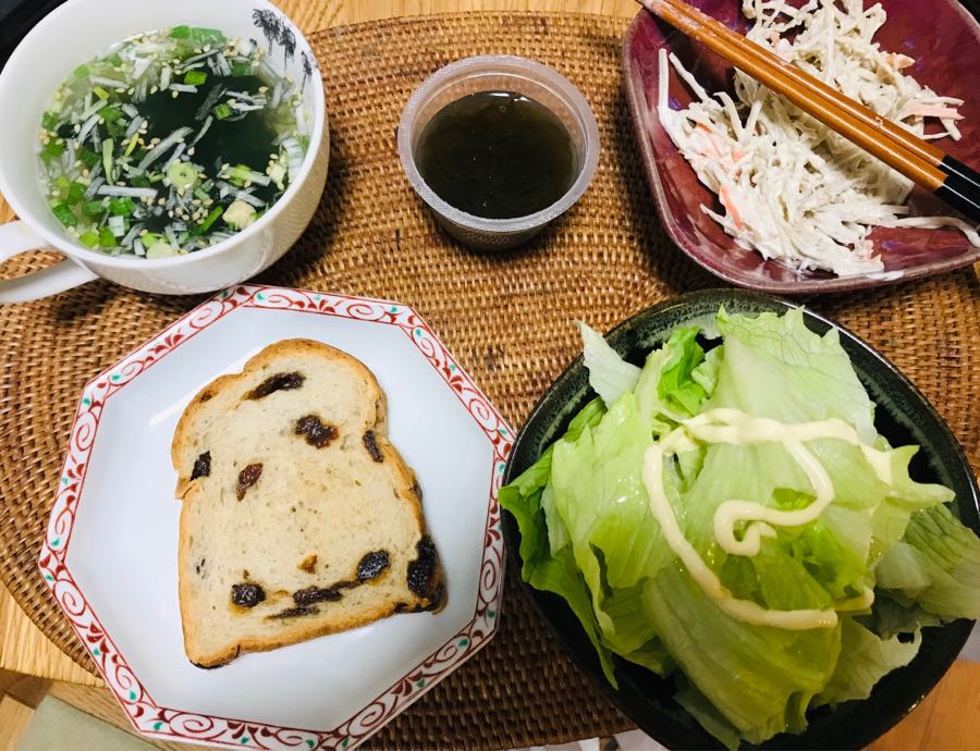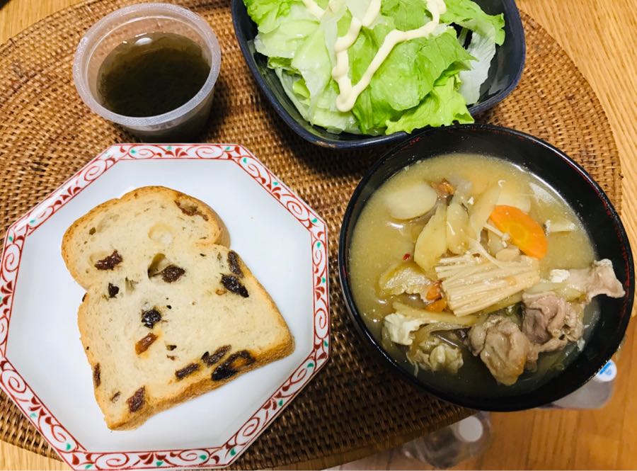 おはようございます😃小倉は晴れです。今日の朝食は、レーズンパン、卵🥚入り豚汁、レタスのサラダと黒酢もずくでした。今週もよろしくお願いします。記事にビビっときたらワンクリックお願いします!♪!!アダルトトラックバックやコメントはやめてください!!