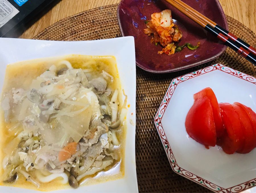 こんにちは、小倉は曇り☁️です。鷲峰山から戻り、風呂に入リました。今日の昼食は、卵🥚入り味噌煮込みうどん、トマト、白菜キムチでした。素敵な日曜日となりますように記事にビビっときたらワンクリックお願いします!♪!!アダルトトラックバックやコメントはやめてください!!