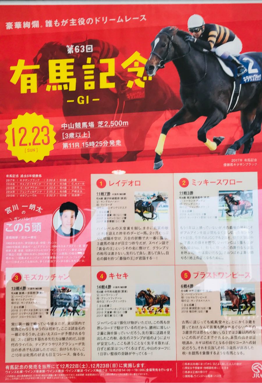 おはようございます😃小倉は雨☂️後晴れです。今日は第63回有馬記念があります。1番人気は、6枠12番レイデオロ 2.5倍秋天皇賞馬でルメール騎手2番人気は、7枠14番キセキ 6.7倍jc2着馬で川田騎手スポーツ新聞🗞を買いじっくり検討します。素敵な日曜日となりますように 記事にビビっときたらワンクリックお願いします!♪!!アダルトトラックバックやコメントはやめてください!!