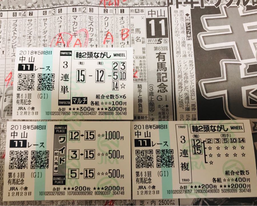 こんにちは、有馬記念はワイド 12-15 1000円で6900円で100円のマイナスとなりました。IPATも同額の配当でした。いまからプールに通います。素敵な日曜日となりますように 記事にビビっときたらワンクリックお願いします!♪!!アダルトトラックバックやコメントはやめてください!!