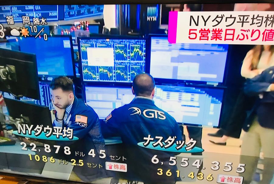 おはようございます😃 NY市場は大幅に上昇 この後も上昇し、915ドル高