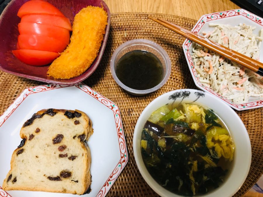 おはようございます😃小倉は曇り☁️です。今日の朝食は、レーズンパン、しじみわかめスープ、ギョロッケ、トマトとポテトサラダと黒酢もずくでした。素敵な金曜日となりますように記事にビビっときたらワンクリックお願いします!♪!!アダルトトラックバックやコメントはやめてください!!