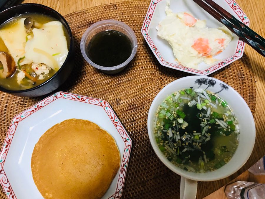 おはようございます😃小倉は曇り後晴れです。今日の朝食は、パンケーキしじみわかめスープ、水餃子入り味噌汁、ポテトサラダと黒酢もずくでした。素敵な土曜日となりますように 記事にビビっときたらワンクリックお願いします!♪!!アダルトトラックバックやコメントはやめてください!!