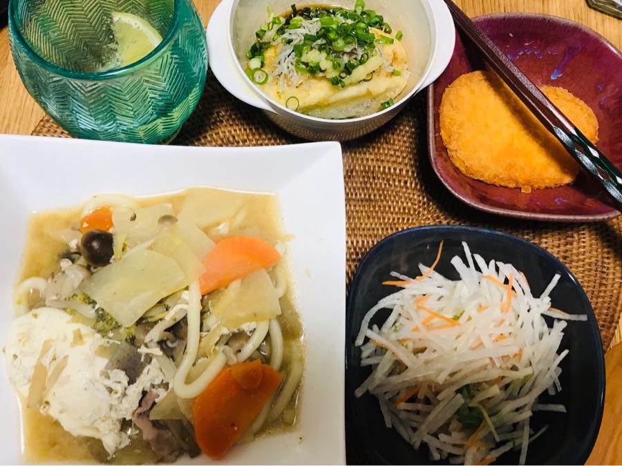 こんばんは、小倉は曇り☁️です。今日の家呑みは、うどん入り味噌汁、ギョロッケ、カットダイコンサラダとレモン🍋入り酎ハイでした。この後は、圧力鍋で作った筑前煮としらすと細ねぎとニンニクをトッピングした揚げだし豆腐を肴にゴボウ茶で割った芋焼酎を呑みます。素敵な水曜日となりますように記事にビビっときたらワンクリックお願いします!♪!!アダルトトラックバックやコメントはやめてください!!