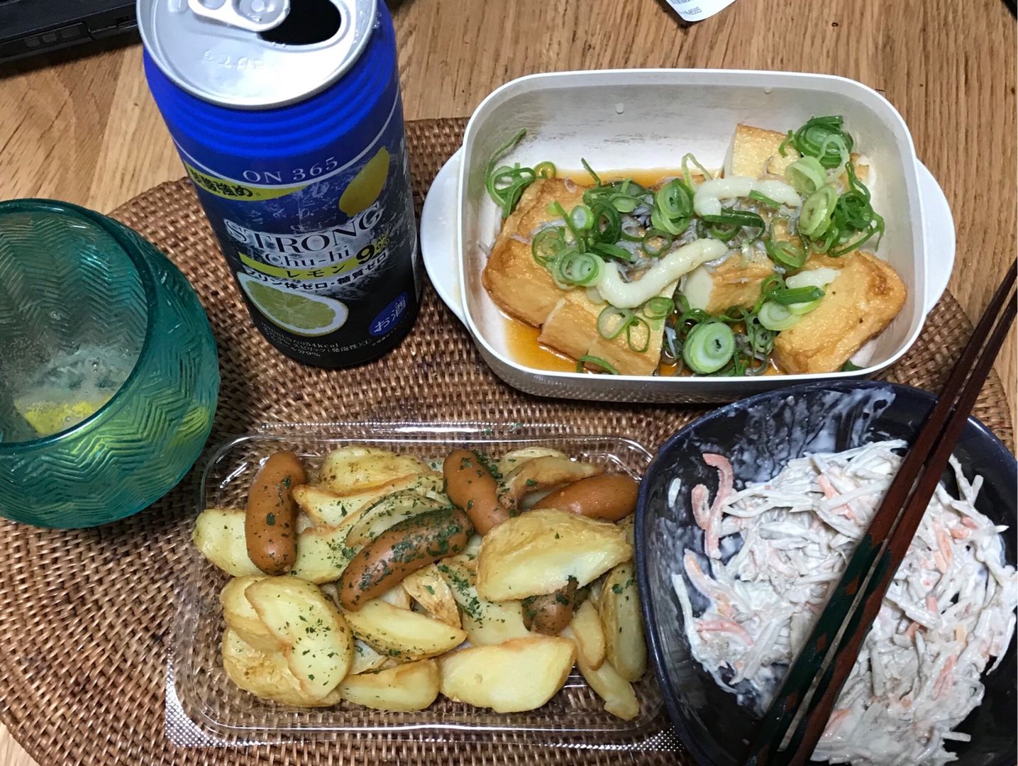 こんばんは、小倉は曇り☁️です。金曜日の家呑み、しらすと細ねぎとニンニクをトッピングした豆乳かまぼこ、ジャーマンポテト、ゴボウサラダ、レモン🍋入り酎ハイでした。この後は、筑前煮、白菜キムチを肴に芋焼酎を飲みます。今日も素適な金曜日となりますように ブログランキングに参加しています。 記事にビビっときたらワンクリックお願いします!♪!!アダルトトラックバックやコメントはやめてください!!