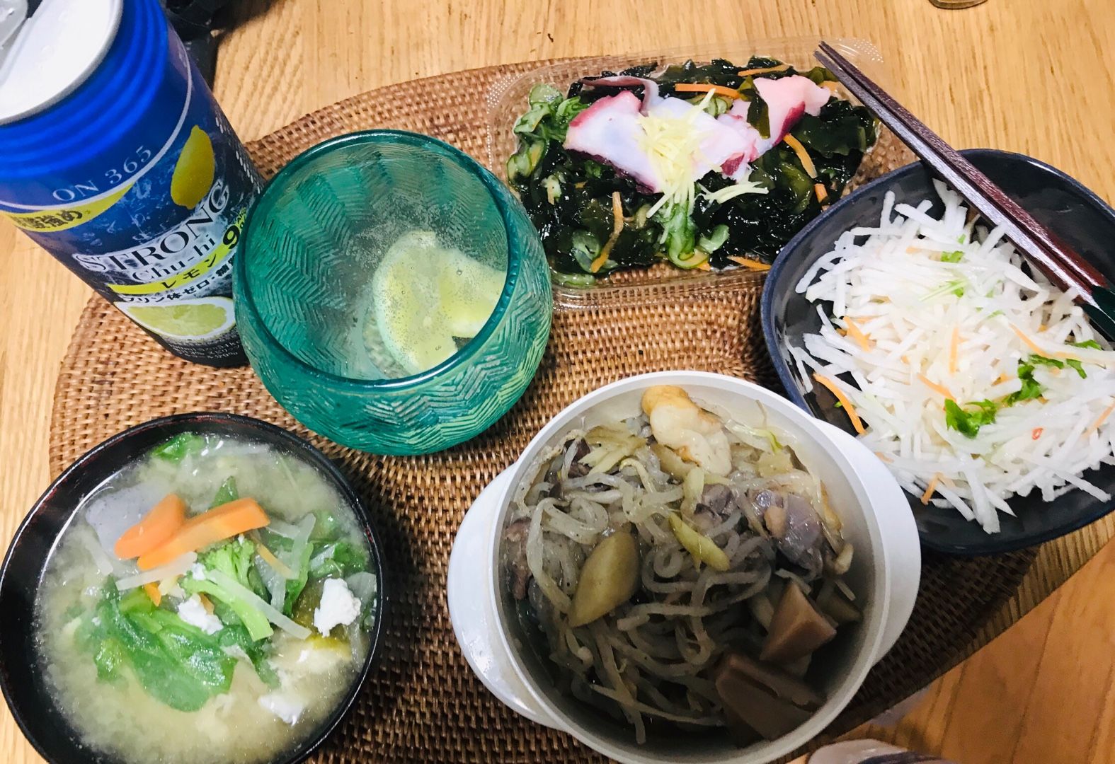 こんばんは、小倉は曇りです。水曜日の家呑みは、筑前煮、タコとワカメの酢の物、しらすと細ねぎとニンニクをトッピングした豆乳かまぼこ、卵いり味噌汁とレモン🍋入り酎ハイでした。この後は、レモン🍋入り芋焼酎を飲みます。素敵な水曜日となりますようにブログランキングに参加しています。 記事にビビっときたらワンクリックお願いします!♪!!アダルトトラックバックやコメントはやめてください!!