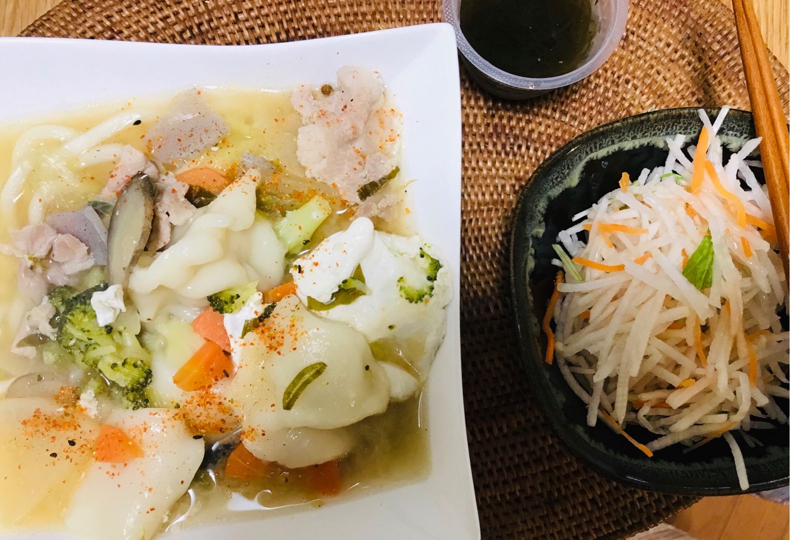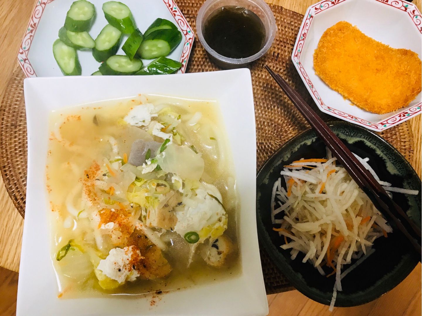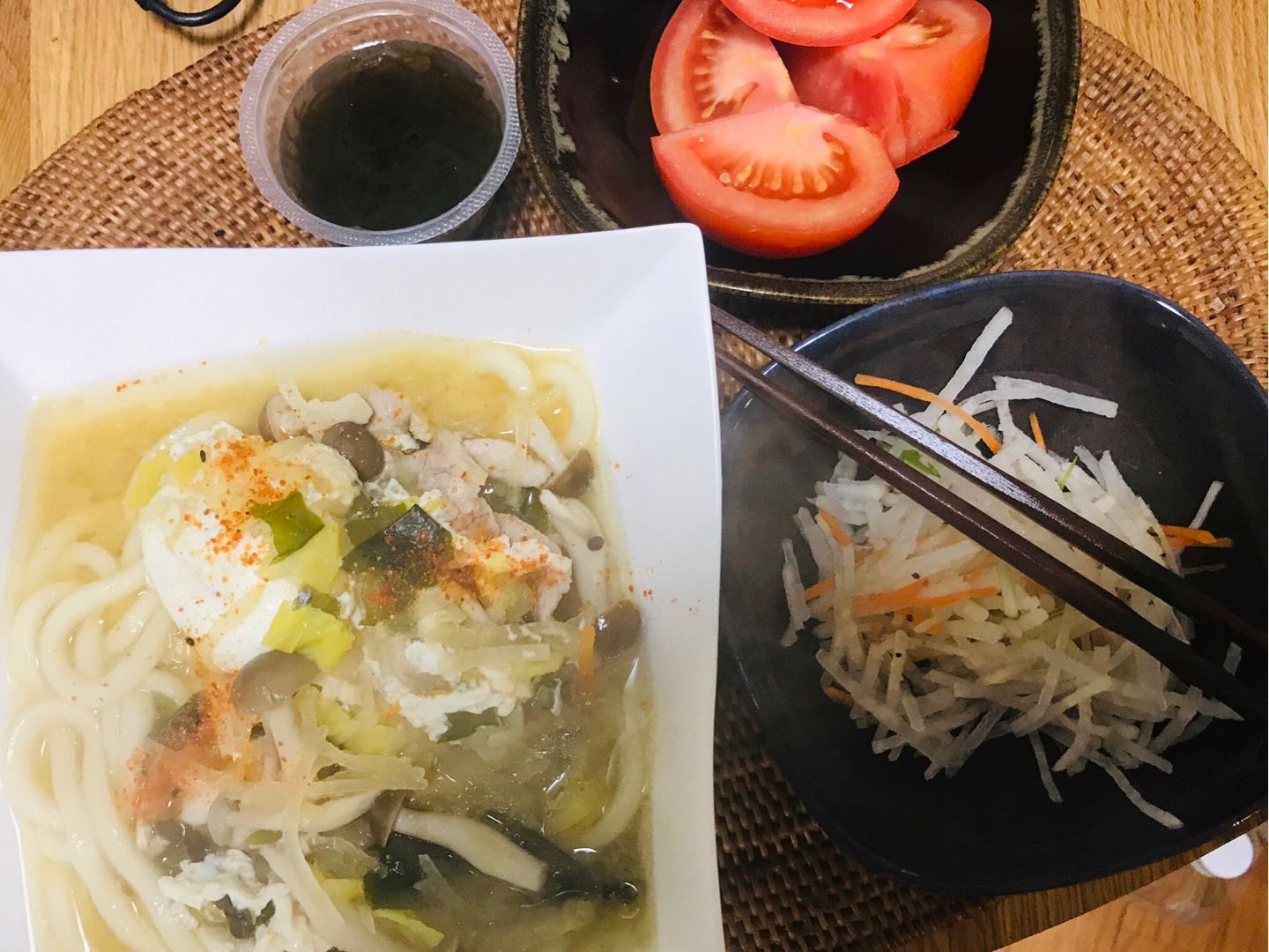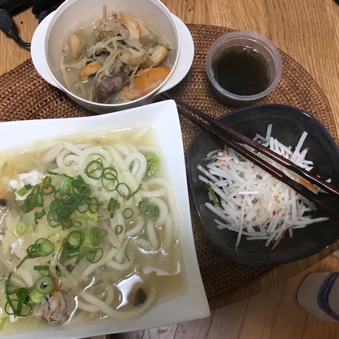おはようございます😃小倉は曇り☁️です。木曜日の朝食は、水餃子入り豚汁風煮込みうどん、カットダイコンサラダ、黒酢もずくでした。今日もプールに通います。素敵な木曜日となりますように 記事にビビっときたらワンクリックお願いします!♪!!アダルトトラックバックやコメントはやめてください!!
