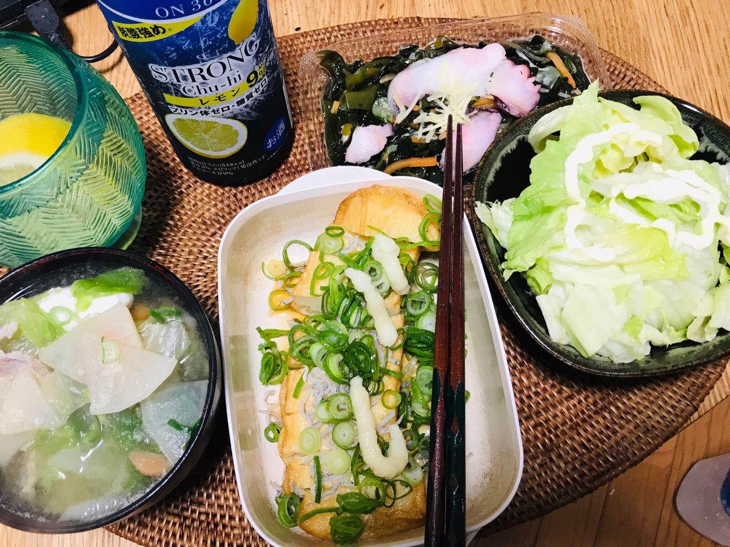 こんばんは、小倉は小雨です。水曜日の家呑みは、しらすと細ねぎとニンニクをトッピングした豆乳かまぼこ、卵🥚入り豚汁、タコとワカメの酢の物、レモン🍋のサラダ、レモン🍋入り酎ハイでした。この後は、筑前煮を肴に芋焼酎を飲みます。素敵な水曜日となりますように 記事にビビっときたらワンクリックお願いします!♪!!アダルトトラックバックやコメントはやめてください!!