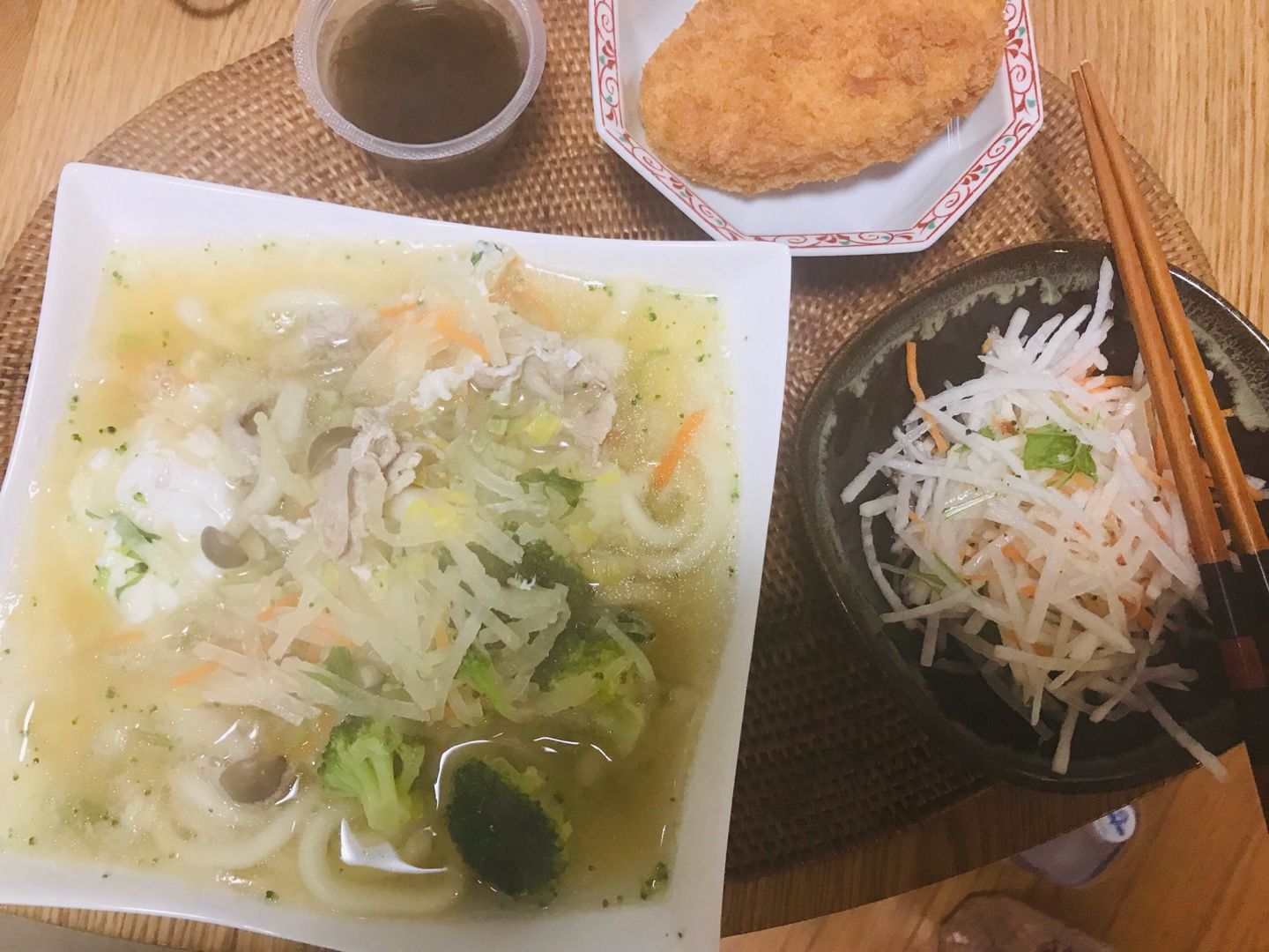 おはようございます😃小倉は晴れています。日曜日の朝食は、シメジたっぷりの卵🥚入り煮込みうどん、野菜コロッケ、カットダイコンサラダでした。今日もプールに通います。今日も素適な日曜日となりますように ブログランキングに参加しています。 記事にビビっときたらワンクリックお願いします!♪!!アダルトトラックバックやコメントはやめてください!!