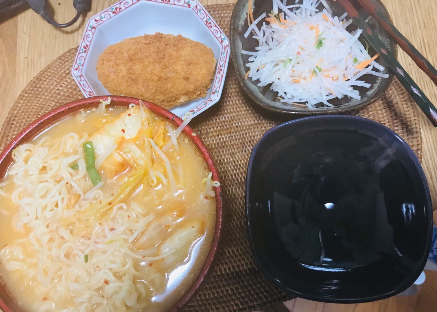 こんにちは、小倉は曇りです。水曜日の昼食は、黒豆もやしと白菜キムチをトッピングした豚骨らーめん、野菜コロッケ、カットダイコンサラダでした。今から白菜キムチを買いに出かけます。素敵な水曜日となりますようにブログランキングに参加しています。 記事にビビっときたらワンクリックお願いします!♪!!アダルトトラックバックやコメントはやめてください!!